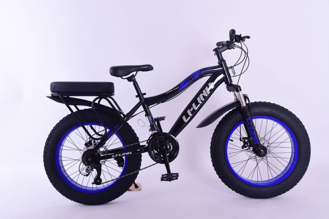 Experience power, comfort, and style with the L-LINK LK550MTB 20″ Fat Tire Mountain Bike. Built for both city rides and rugged off-road trails, this bike features extra-wide tires for superior grip, a dual seat for comfort, front suspension, and disc brakes for reliable stopping power. Its durable steel frame and striking blue rims make it perfect for riders who want performance and design in one package.